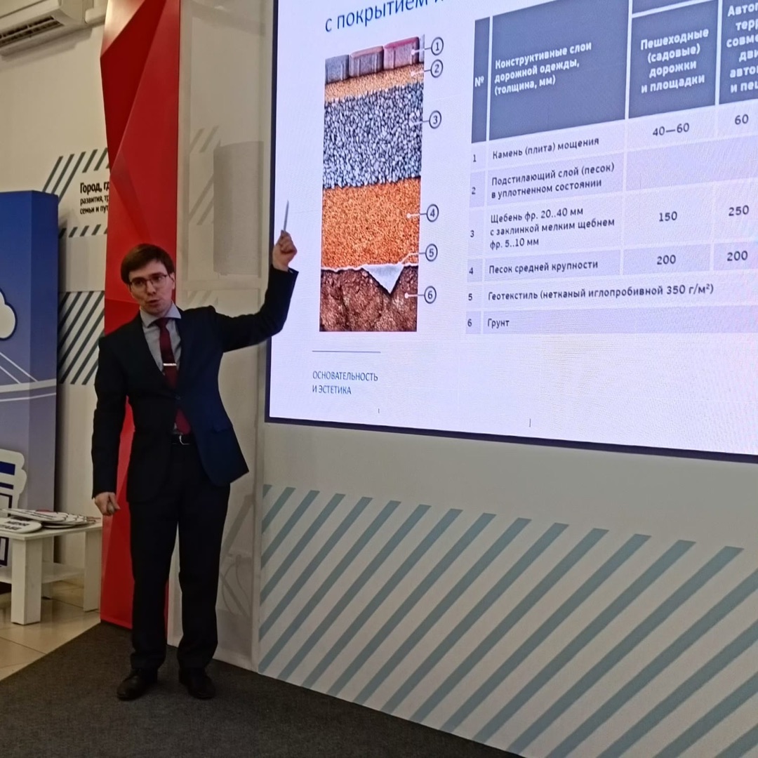 Мы поговорили о видах плит и камней мощения и о правилах подбора толщины изделий. Поделились информацией об обязательной сертификации тротуарной плитки и показали актуальную нормативную документацию, которая так необходима в при разработке проектов благоустройства. В том числе был проведен мастер-класс по оценке качества изделий на строительном объекте. В том числе специалисты рассказали о дополнительных способах обработки поверхности плиточных покрытий .